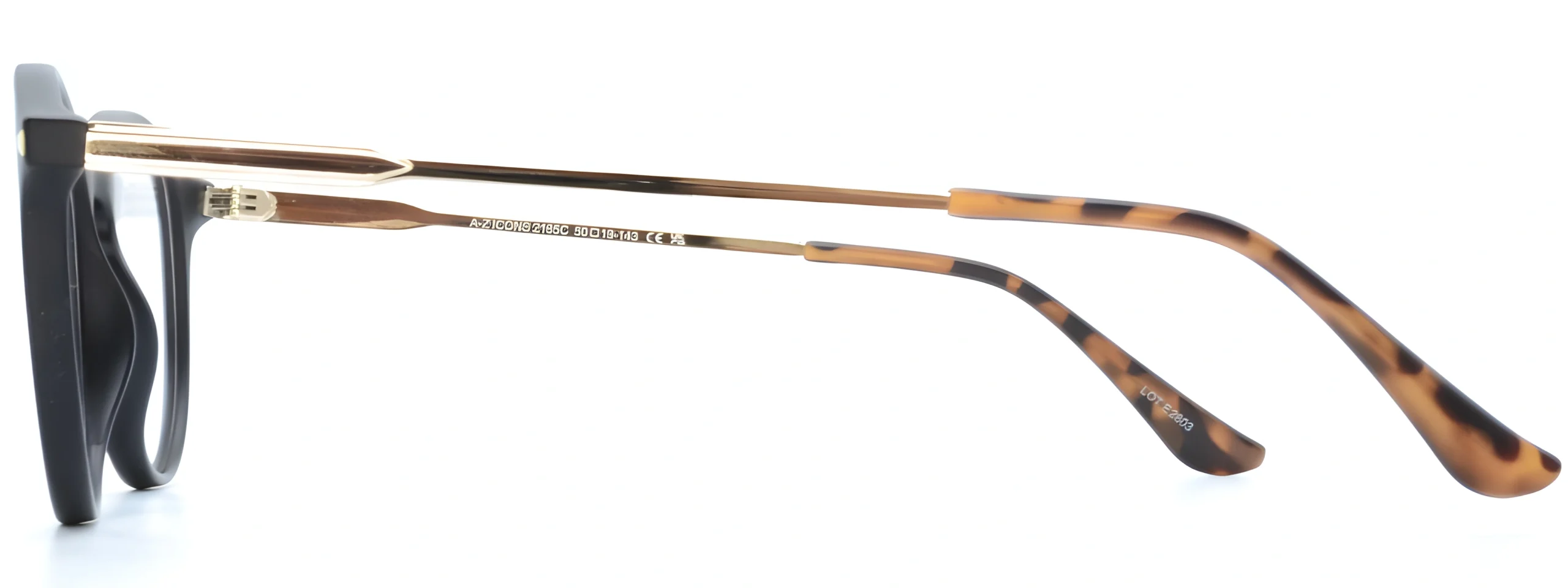 A-Z 2185C Black Havana unisex glasses with a round shape, combining black acetate and metal temples with Havana-patterned tips. Lightweight and perfect for custom prescription lenses.