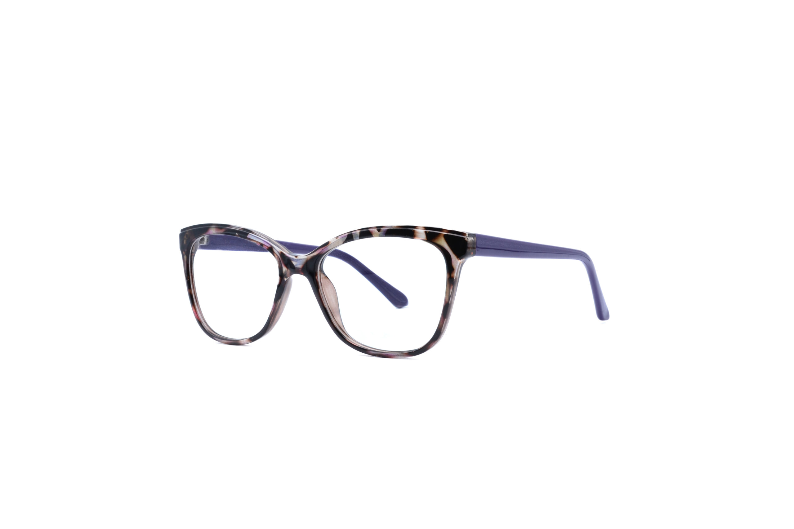 The A-Z 310D Purple Glasses are a striking choice for women looking to add a pop of colour to their eyewear. Featuring a brown frame with white and black spots and bold purple arms, these cat-eye glasses offer a blend of sophistication and fun. The classic cat-eye shape adds a graceful lift to the face, making them a flattering choice for many face shapes. Made from durable acetate, these frames are lightweight and comfortable, ideal for all-day wear.