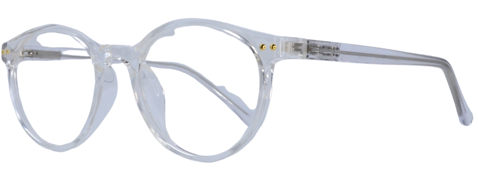 The Heat HE2006 clear glasses boast a sturdy acetate frame, showcasing a timeless round shape. Spring-loaded hinges provide comfort, offering style for daily use.