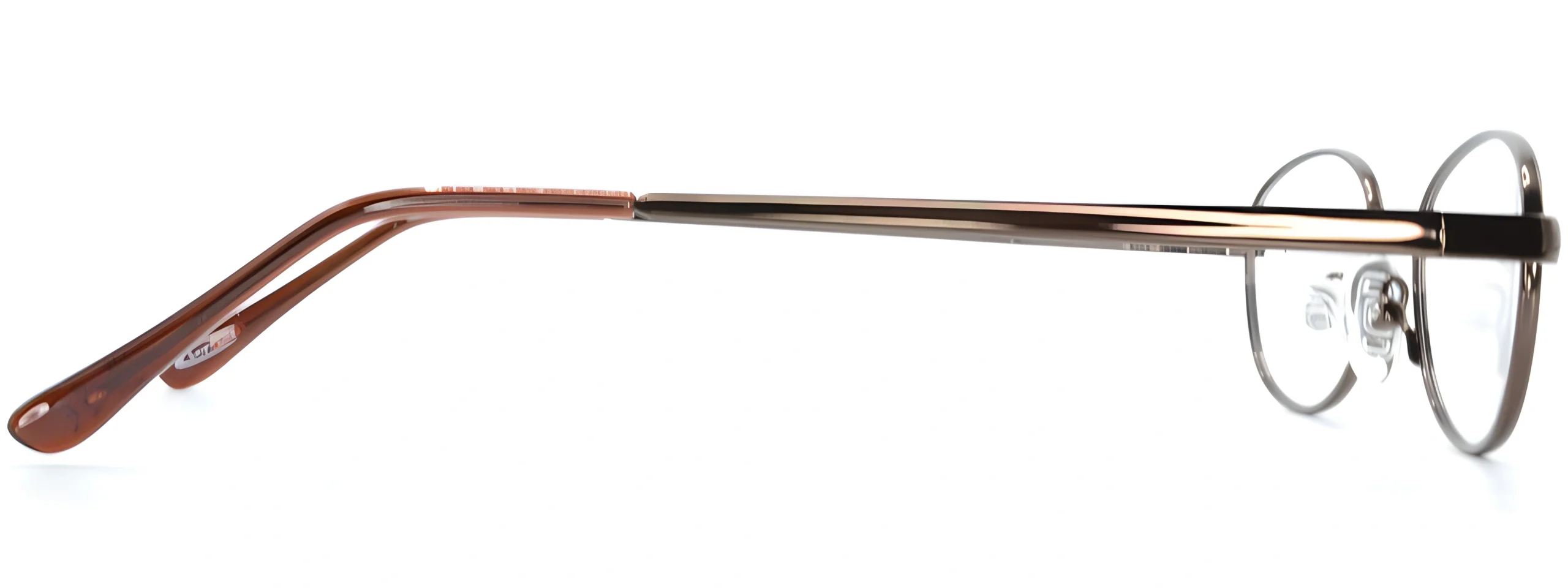 The Smartline SL004 Bronze Glasses feature an oval metal frame with spring-loaded hinges for flexibility and comfort. This lightweight and durable design offers a sleek bronze finish, perfect for everyday wear.