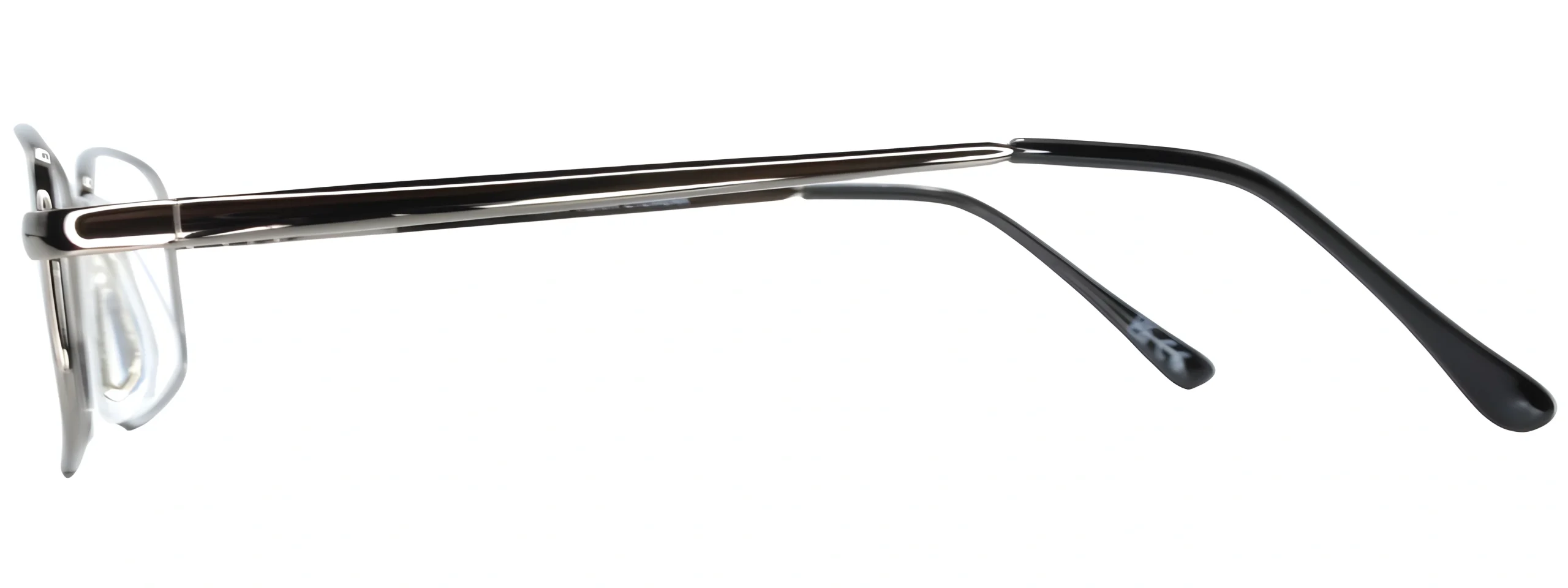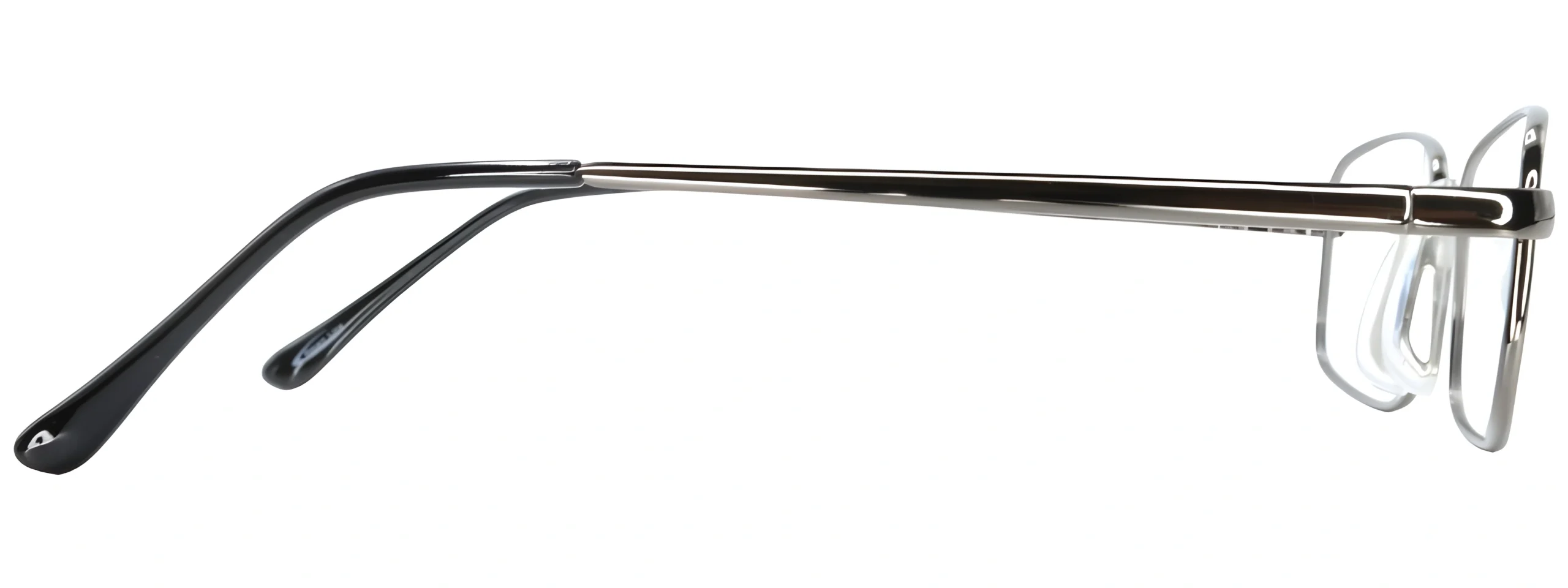 The Smartline SL040 Gunmetal Glasses feature a rectangular metal frame with spring-loaded hinges and nose pads for durability and comfort.