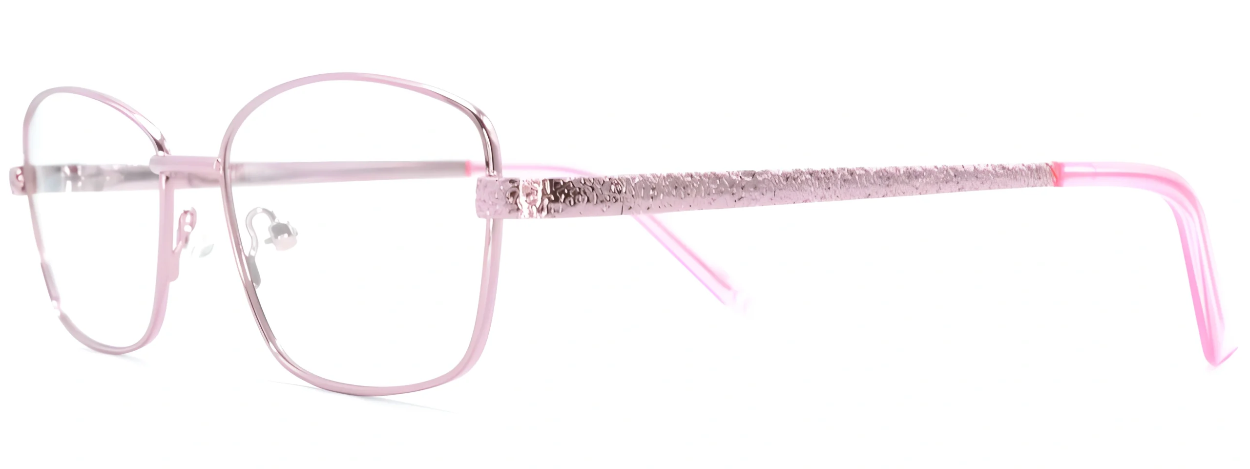 The Smartline SL052 Pink Glasses feature a rectangular metal frame with spring-loaded hinges for durability, comfort with a touch of elegance.