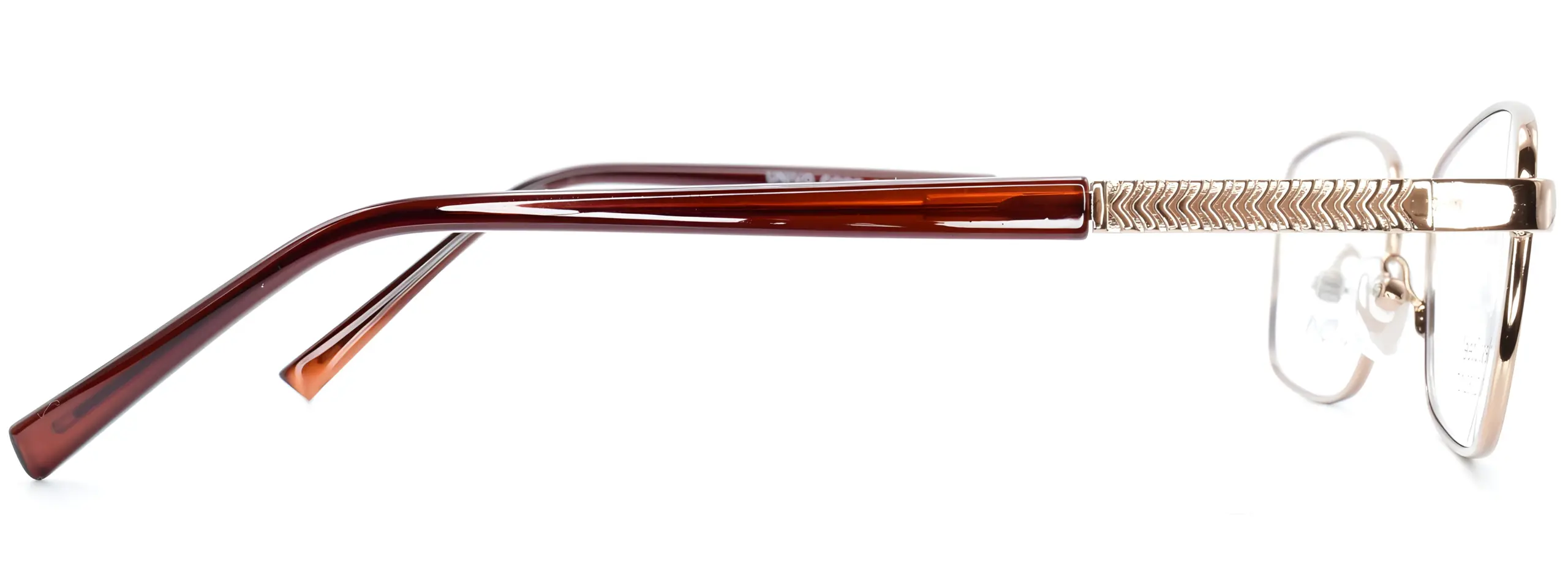 The Univo Core 0730 Gold glasses are suitable for Women. These glasses are made of full-rim metal, with intricate detailing on the arms and include adjustable nose pads for added comfort.