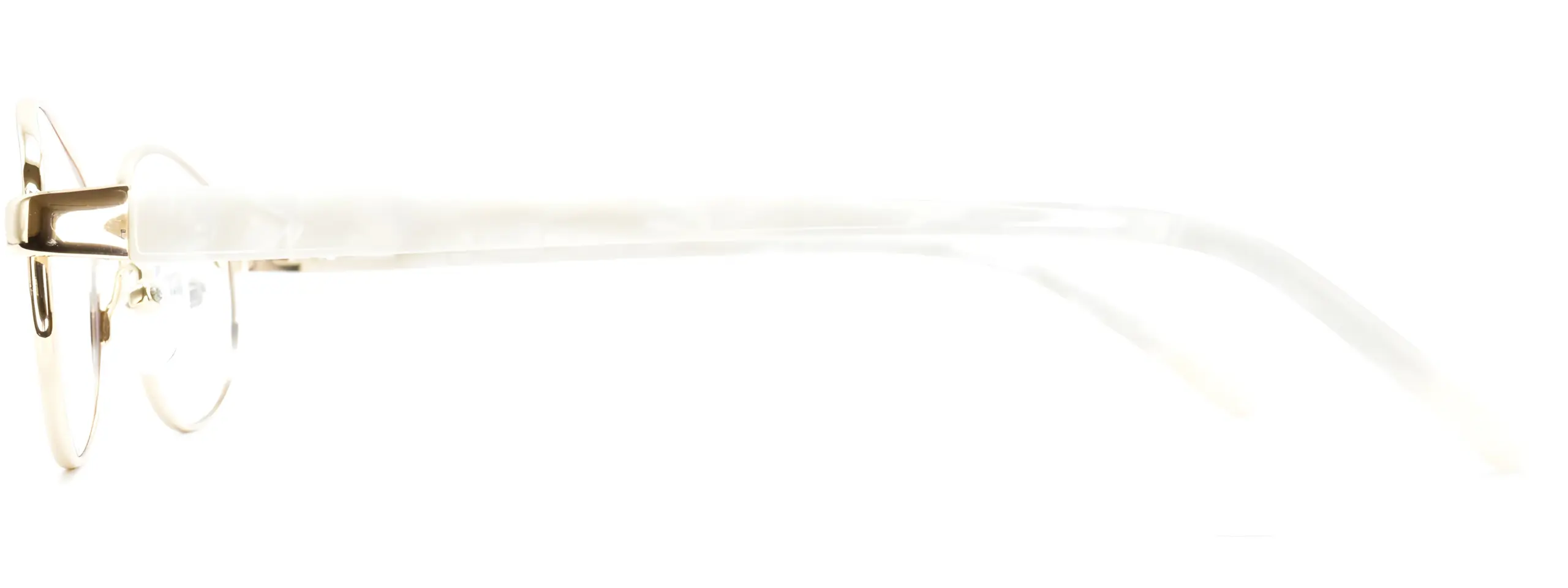 The Univo Core 5758 Gold glasses feature a slim gold metal oval frame and beautiful pearlescent white temples, giving these glasses a truly feminine feel. Lightweight and comfortable with adjustable nose pads for a personalised fit.