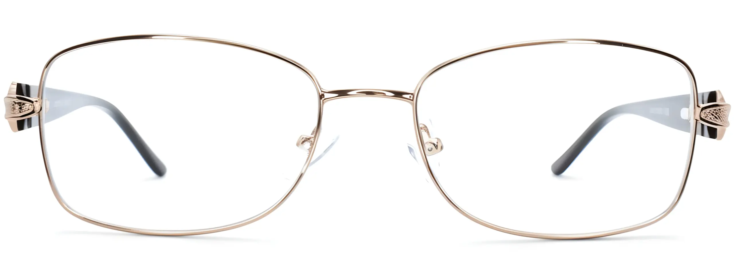 The Univo Core 5759 Bronze glasses feature a slim rose gold metal frame in a rectangular shape, paired with deep chocolate-brown temples and gold diamond-shaped detailing that adds a touch of understated glamour. Lightweight and comfortable for all-day wear. A sophisticated everyday frame for women who love warm tones.