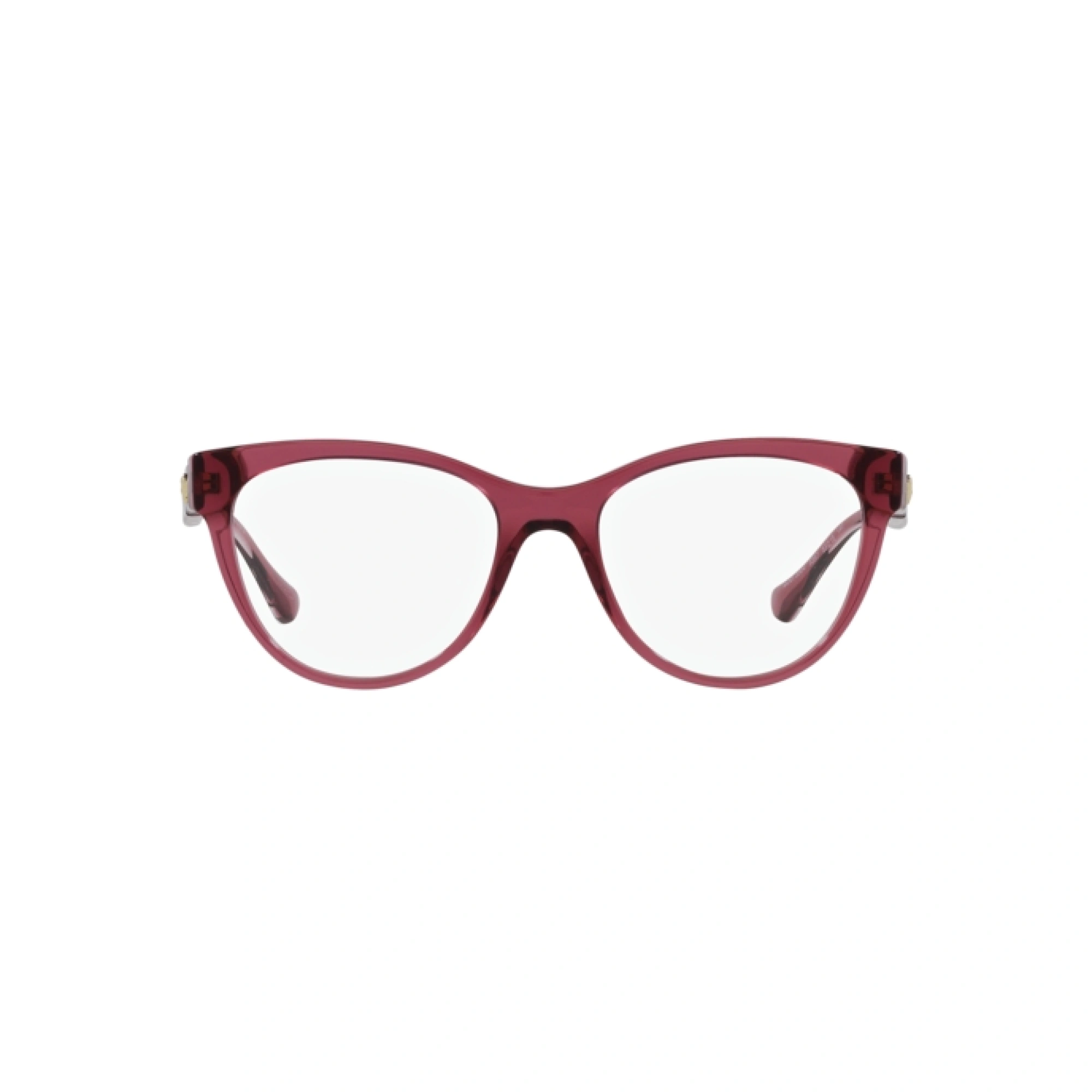 The Versace VE3304 Transparent Red Glasses bring a striking look to everyday eyewear. Designed for women who love to make a statement, these Versace cat-eye glasses feature a captivating transparent red frame that adds a bold pop of colour to any outfit. The classic cat-eye shape creates a flattering lift for the face, adding a touch of elegance with a playful edge. Made from high-quality acetate, these frames are both lightweight and comfortable, perfect for daily wear.
